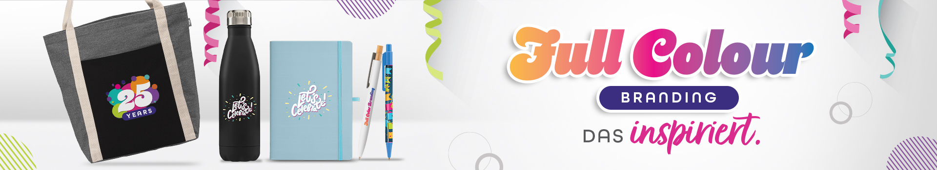 Im Jahr 2019 enthielt unser Katalog mehr als drei Dutzend neue Modelle, darunter Kunststoffschreibgeräte und unsere erste Drinkware-Kollektion, die bald mit einer 360˚- Vollummantelung erhältlich sein wird. Heute bieten wir ColourJet™ bei 90 % unserer Schreibgeräte an und sind mit unserer Möglichkeit der Full Colour Veredlung führend in der Kategorie der Werbeschreibgeräte.